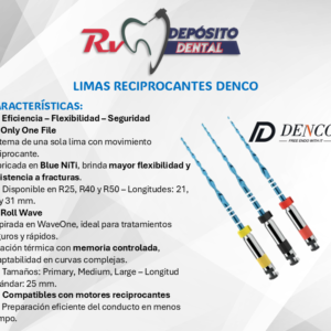 Los Denco Camaleón Super Files III son limas endodónticas rotativas utilizadas en procedimientos endodónticos para la preparación de conductos radiculares. Fabricadas por Denco, estas limas están diseñadas para ofrecer una preparación eficiente, precisa y segura de los conductos radiculares.