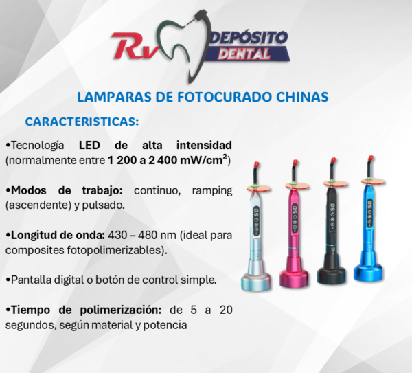 Longitud de onda: 430 – 480 nm (ideal para composites fotopolimerizables)